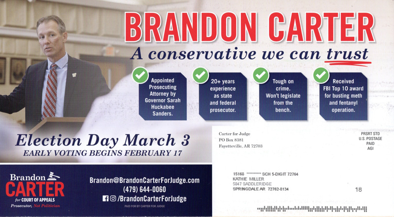 Branden Carter, Prosecuter, Court of apeals, Springdale Elections, Washington County elections,